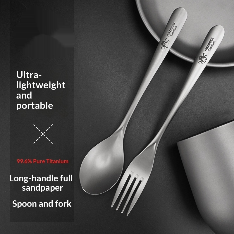 HWZBBEN Titanium Camping Cutlery Set — Fork & Spoon (Ultralight)
