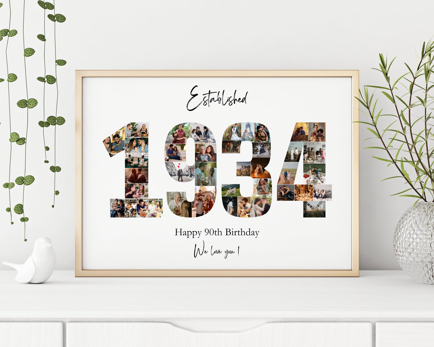 EDITABLE 1934 Birthday Gift, 90th Birthday Photo Collage template, 90th Anniversary, Gift for Grandparents | DIGITAL
