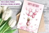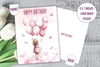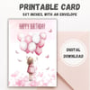 Celebrate your little girl's special day with this adorable and enchanting printable birthday card. Watercolor design, pastel pink colors and whimsical and charming illustration of a girl holding the balloons make this cute birthday card a perfect gift for a little princess. Make her feel special and her special day magical!