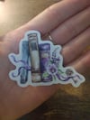 Each order includes one (1) sticker. Sticker is of a bookish design with custom cut and measures two inches tall by two and a half inches long. Sticks great to most surfaces, especially laptops.