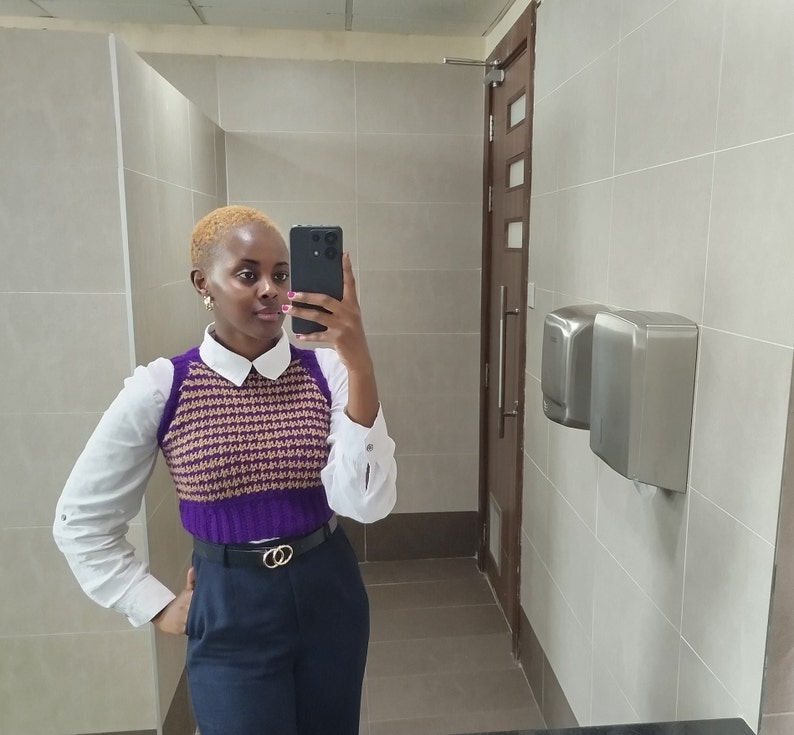 The Houndstooth Crochet Vest Pattern features easy-to-follow instructions, ideal for intermediate and advanced crocheters who want to create a sophisticated vest with a textured ribbed finish. Perfect for pairing with tees, blouses, or jackets, this piece brings a polished look to any outfit.