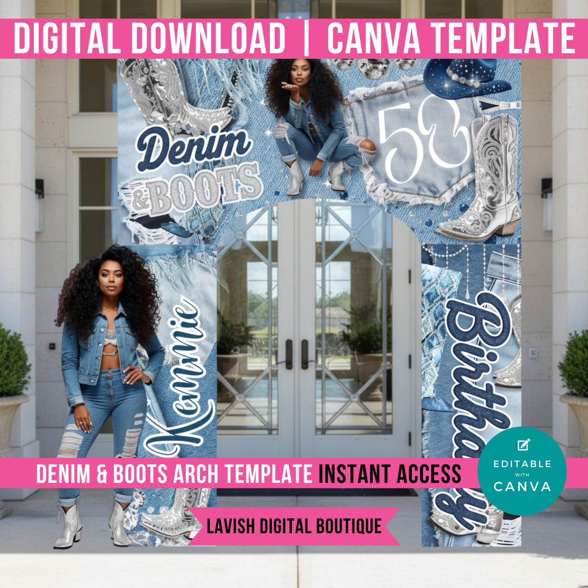 Denim and Boots Entrance Arch /Archway Canva Template