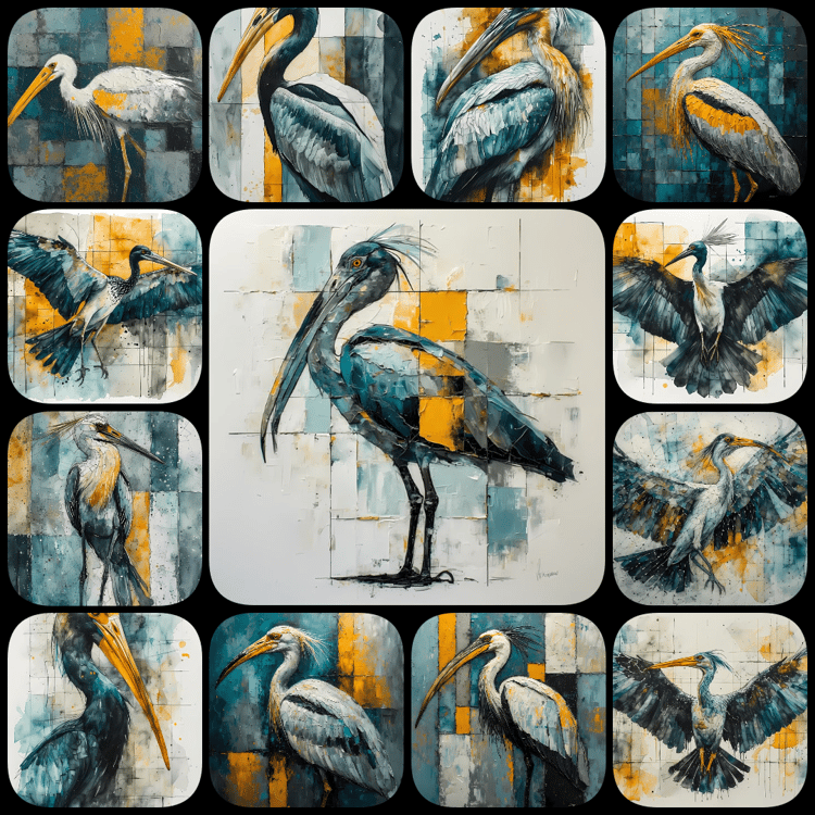 Elevate your space with this captivating digital art bundle, ‘Birds in hues of blue.’ This collection celebrates avian beauty through a wide variety of artistic styles, including stained glass illustration, modern minimalist illustration, pop art, graffiti-inspired art, contemporary abstract illustration, floral decorative illustration, folk art collage illustration, expressive sketch art, geometric art, and watercolor illustration.