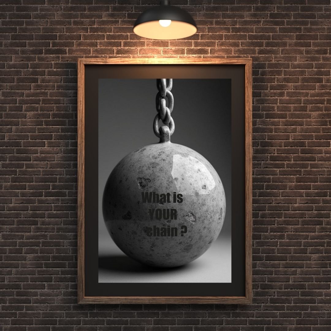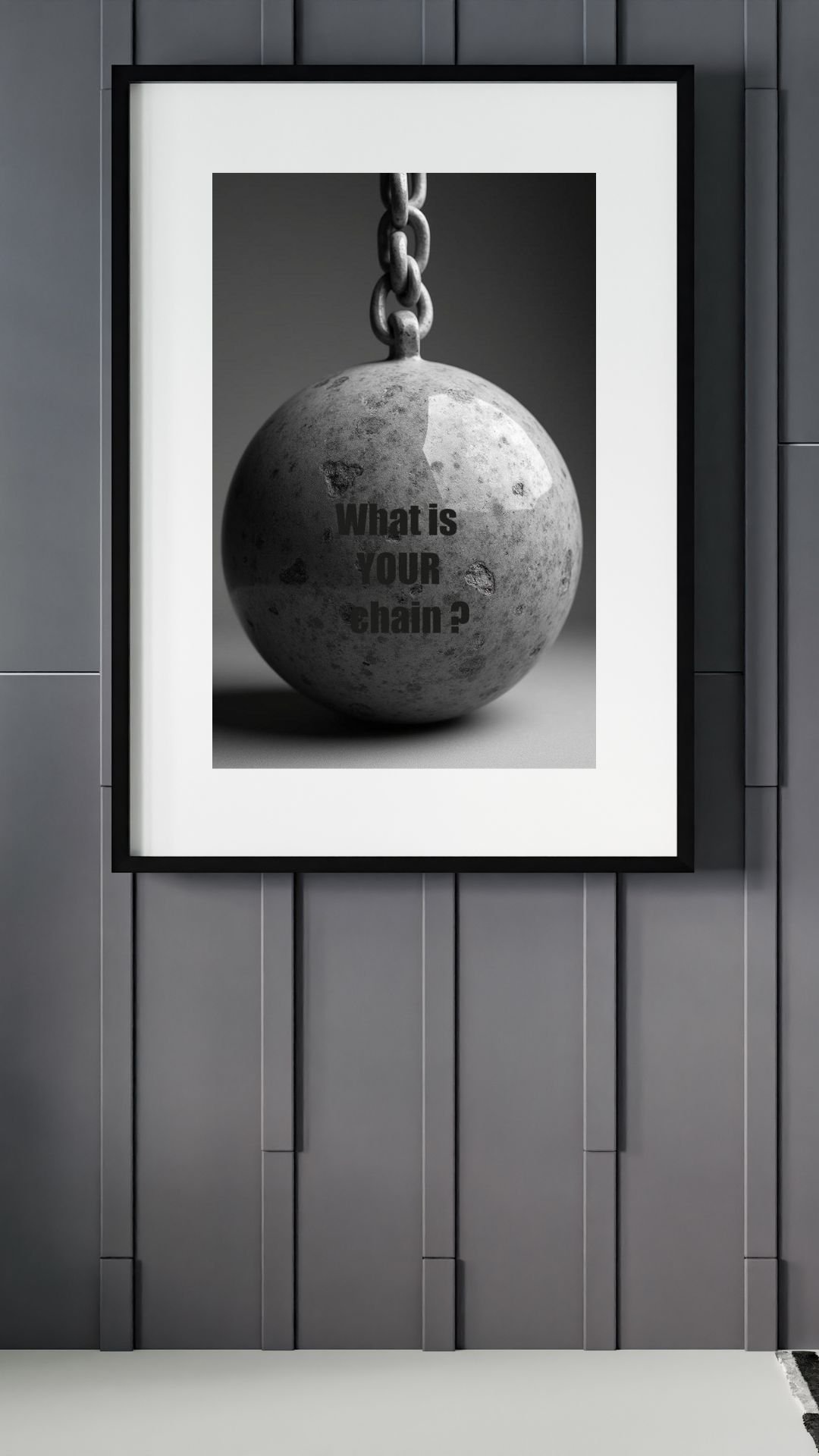 Invite clarity, courage, and inner honesty into your space with this striking piece of self reflection art. Featuring a dramatic wrecking ball and the powerful question “What is your chain?”, this artwork is designed to spark introspection and encourage personal growth. It serves as a gentle yet bold reminder to pause, look inward, and acknowledge the emotional weights you’re ready to release.