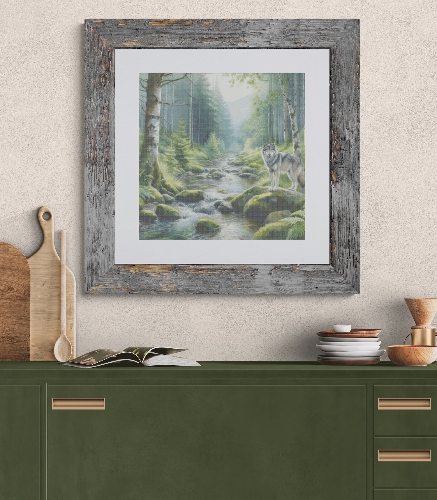 PDF cross stitch pattern, WOLF IN THE FOREST, instant download, DMC Threads