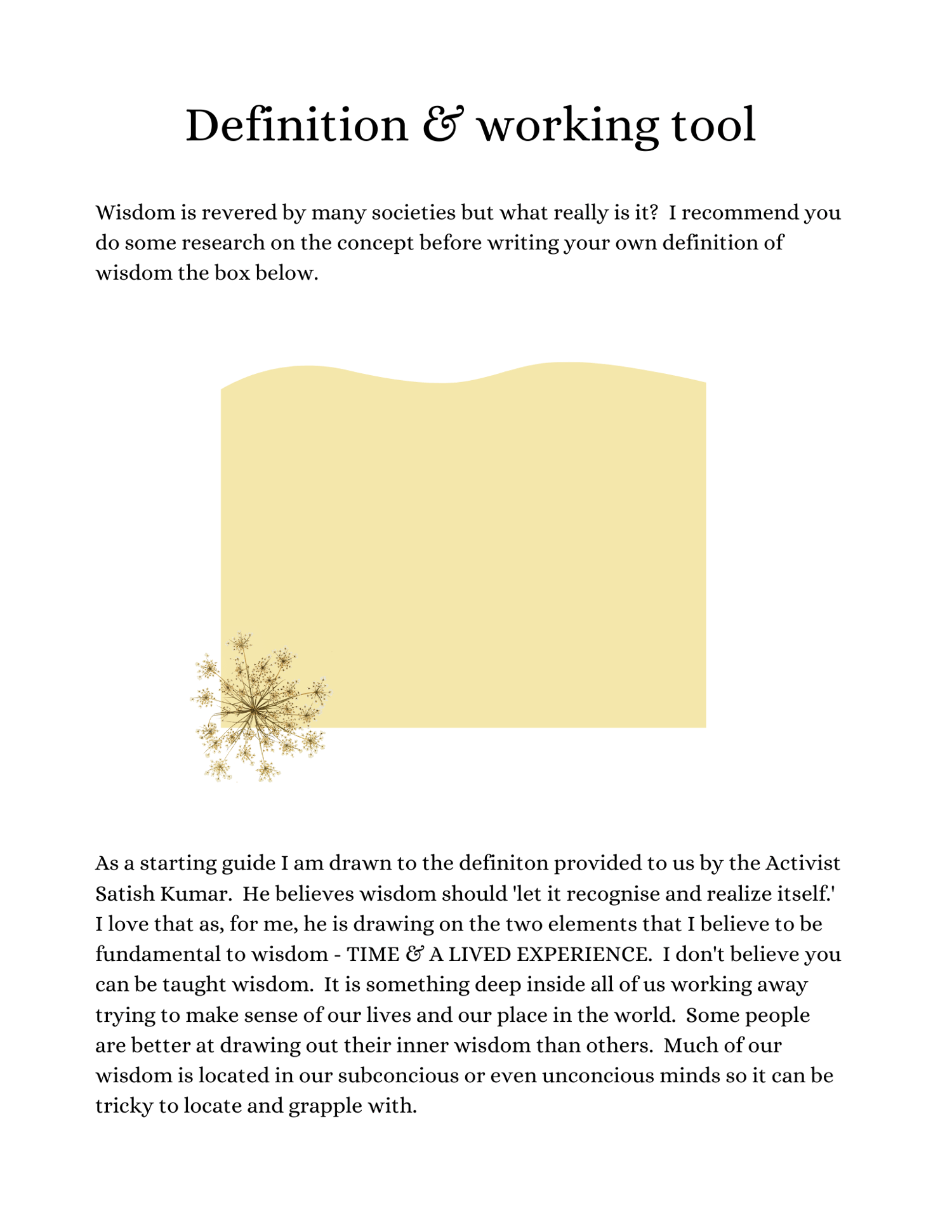 I love the concept of wisdom I encountered it a great deal in my meditation training. In this digital workbook we explore the conept of wisdom visually. It means something different to all of us but the workbook takes you through a beautifully creative project before giving you time and space to read your collage and reflect on what it is telling you. I hope you enjoy this project.