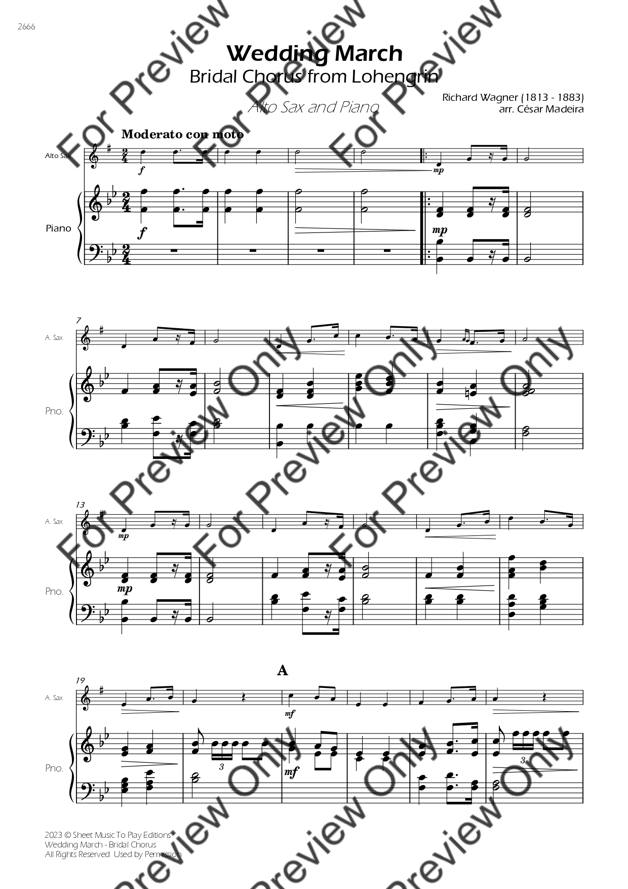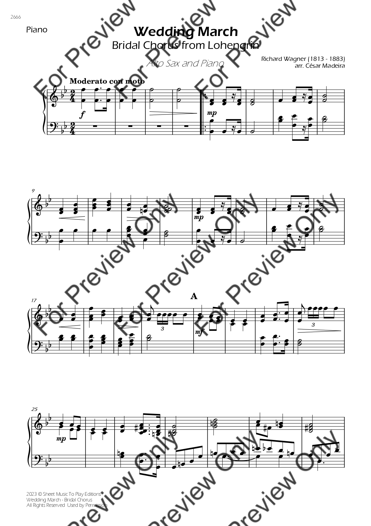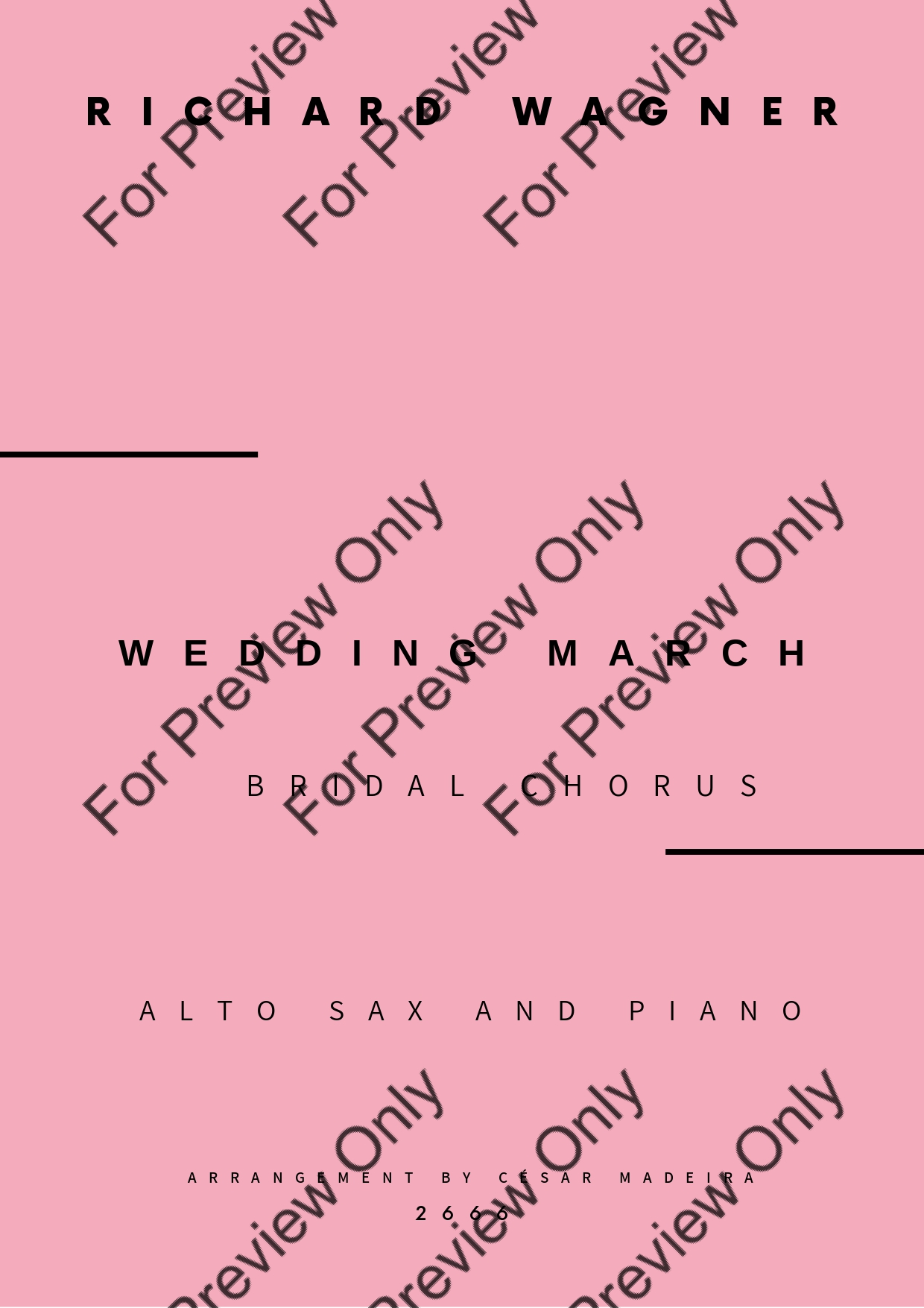 The Wedding March (Bridal Chorus) by Richard Wagner. Arrangement for Alto Saxophone and Piano. With Full Score and Individual Parts. Have fun!