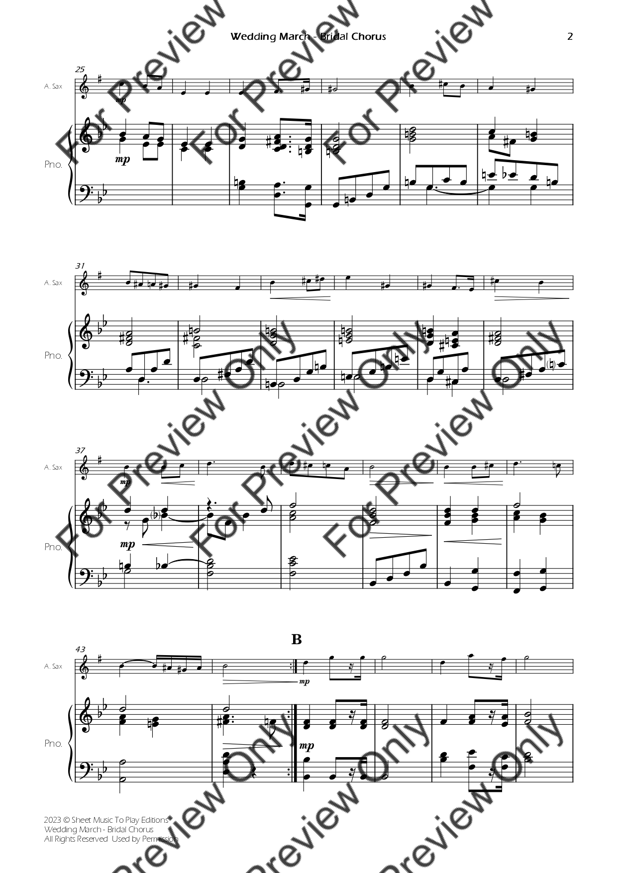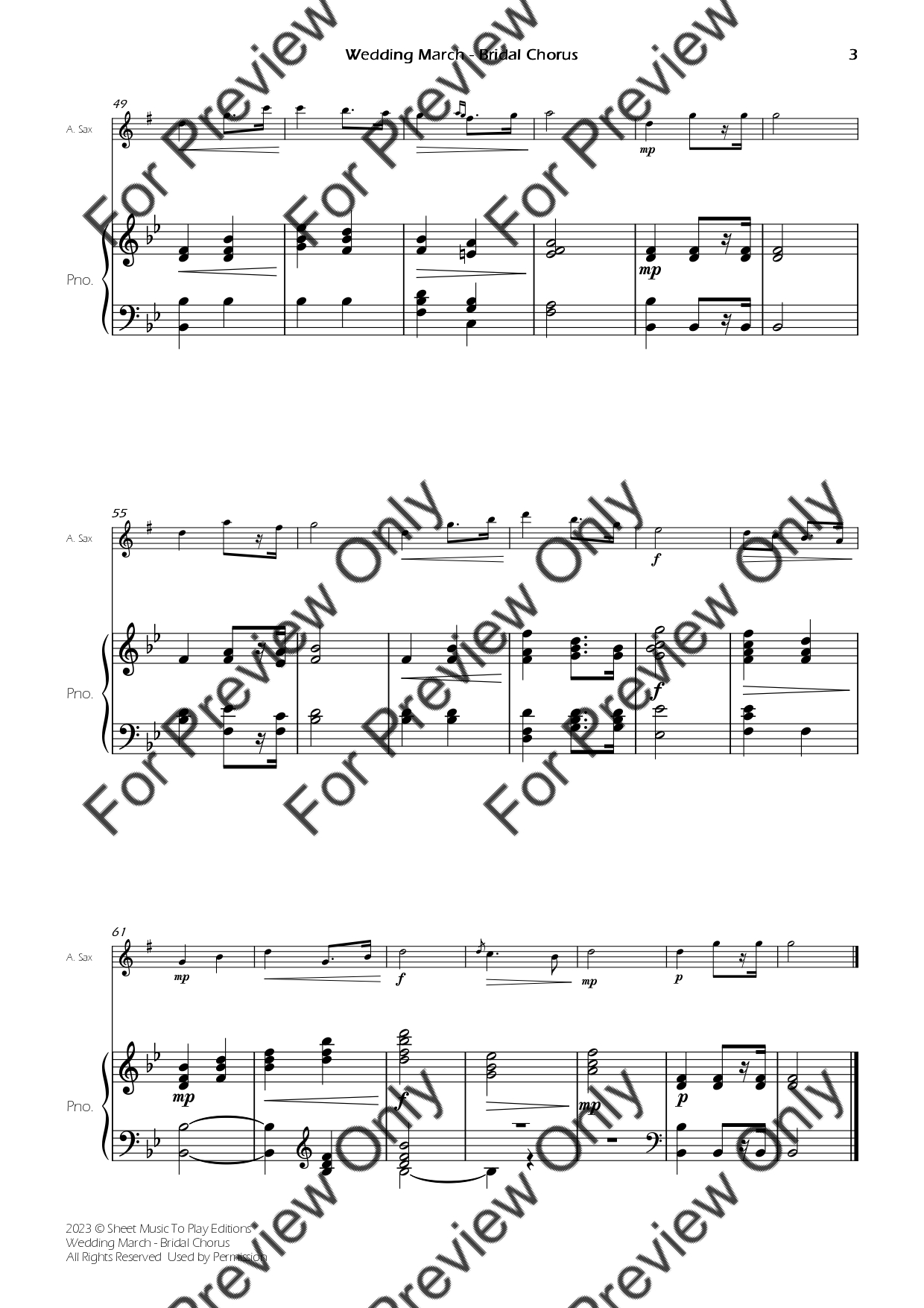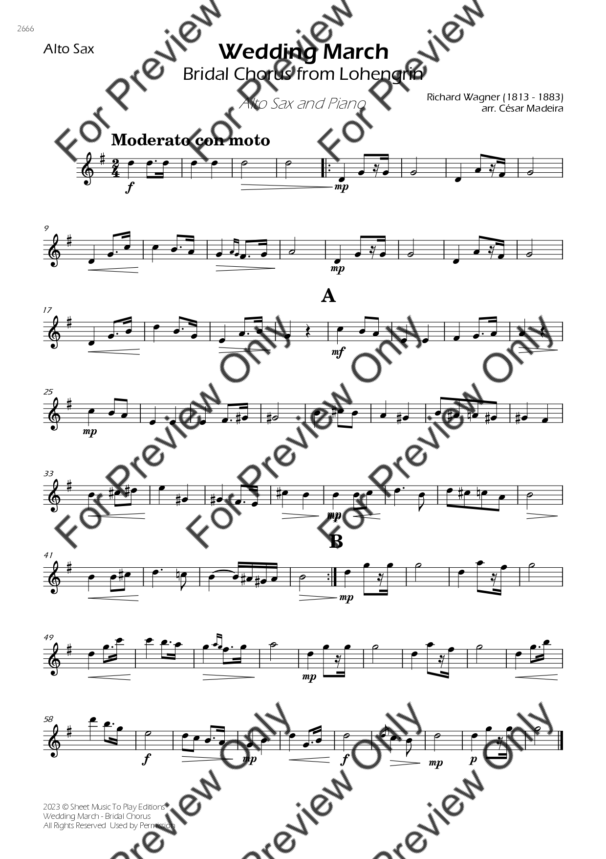 The Wedding March (Bridal Chorus) by Richard Wagner. Arrangement for Alto Saxophone and Piano. With Full Score and Individual Parts. Have fun!