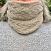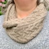 Sidewinder is an elegant, infinity style cowl that takes the signature stitch patterns for my whole Dune collection to provide trails of soft meandering cables reminiscent of the pattern a sidewinder makes as it glides over a dune.
