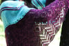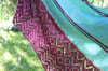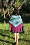 Is a triangle shawl non-traditional with a lace border. Fancy and feminine accessory special for spring or summer time. This shawl is bottom-up construction with decreasing stitches on both sides. I recommend a semi-solid contrast yarn. You can choose one or two colors.