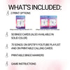 * Play with the included call list or the Spotify/YouTube playlist in shuffle mode—first to line up 5 songs shouts “Bingo!” (or you can choose a different game variation)