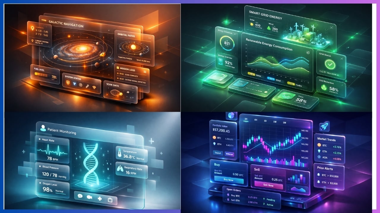 ✅ Fully Customizable: Change UI themes (Finance, Health, Space), data elements, and neon gradients.