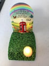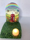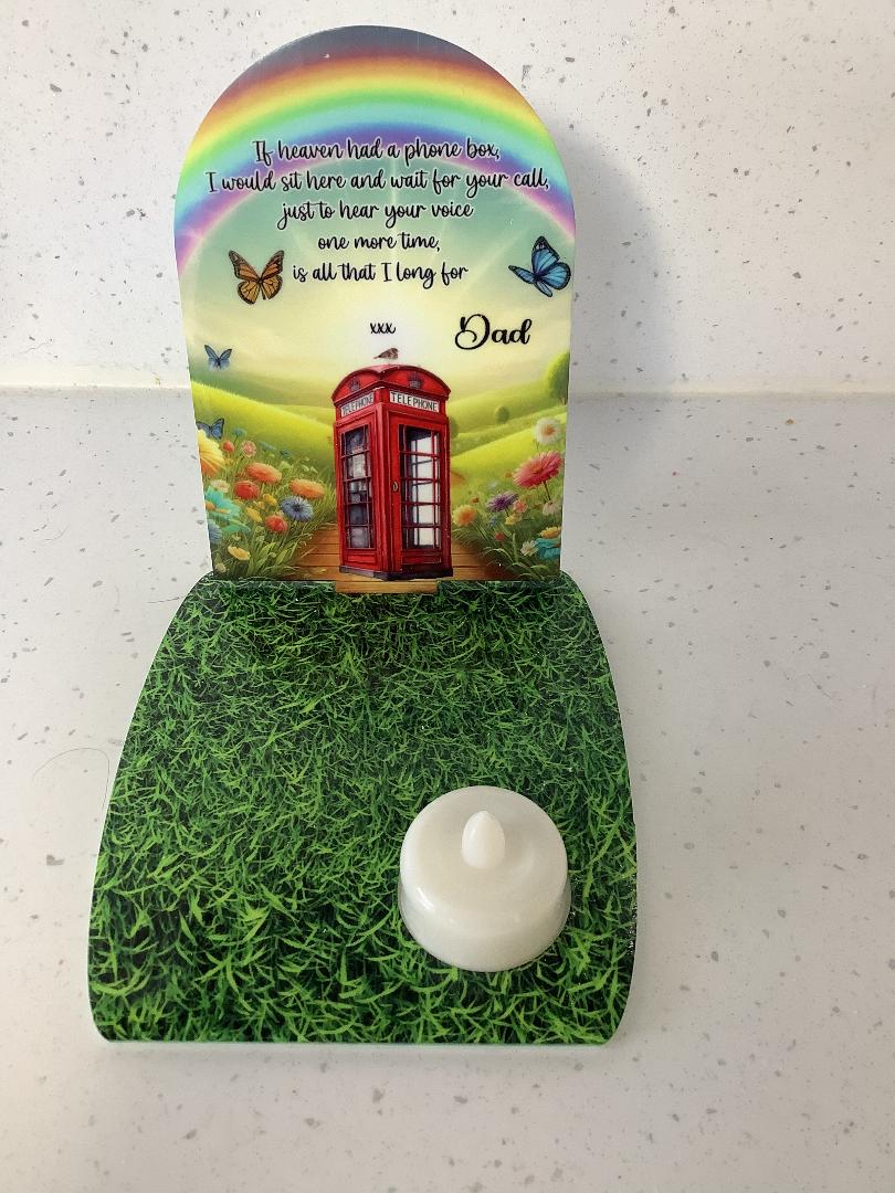 Beautiful personalised memorial keepsake gift with tea light candle , battery operated (supplied)