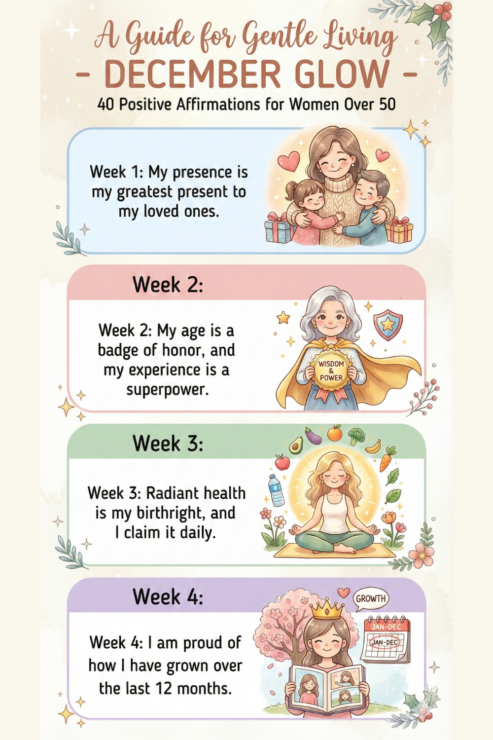 December Glow: 40 Gentle Affirmations for Women Over 50 (Printable PDF)