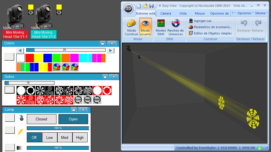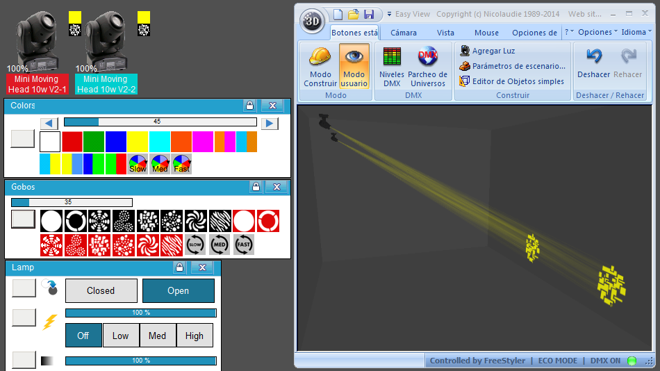 Esta Librería SSL2 está optimizada para trabajar con Magic 3d Easy View. Es decir para ver una representación 3D de las secuencias que estemos realizando con Freestyler, QLC+ o cualquier otro soft que se conecte con Magic 3d.