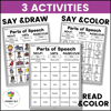These Parts of speech worksheets are fun and engaging. Your students will love coloring or drawing while learning about nouns, verbs and adjectives. It's a good addition to your parts of speech unit and centers.