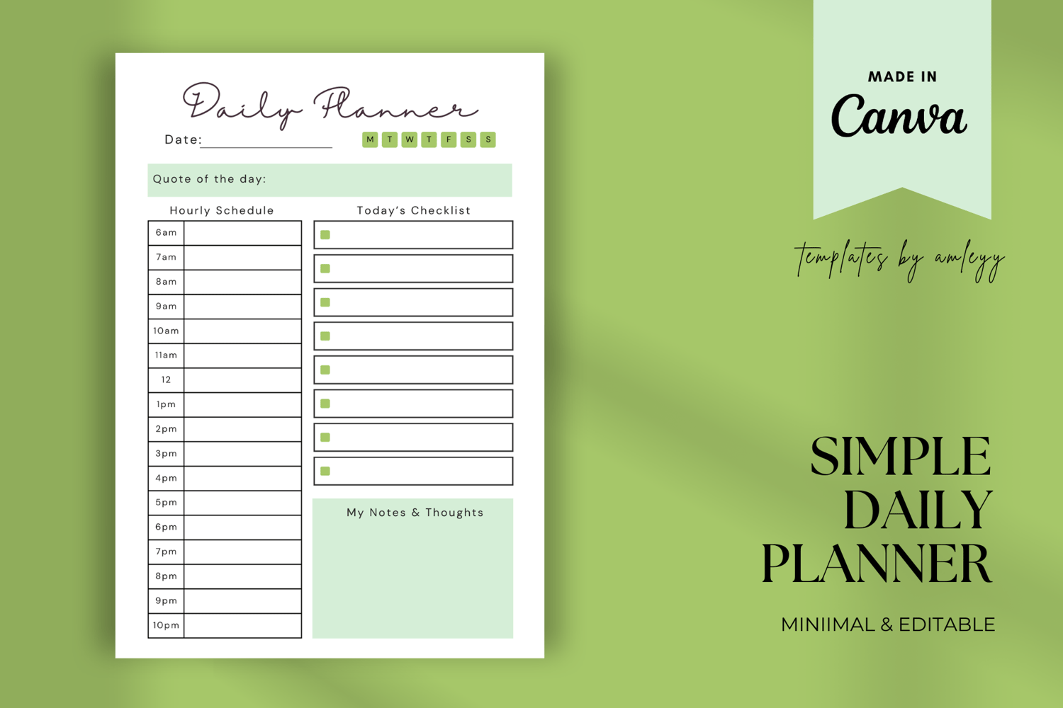 Productivity Daily Planner Template - Editable Canva Organizer for Time Management & Focus
