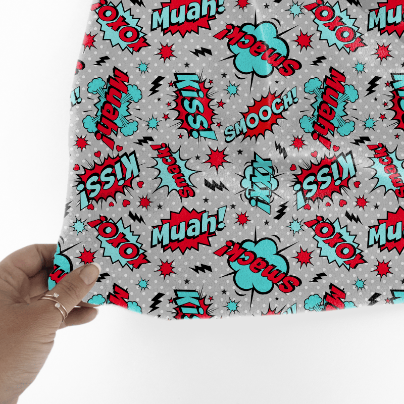 Muah! Smooch! Kiss! Smack! kisses on comic bubbles.