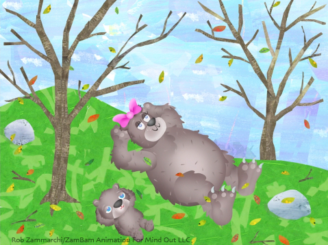 The bear teaches deep relaxing breathing. This type of breathing concentrates the breath from the stomach while the child is breathing in and out of the nose. This type of breath signals the brain and body to relax. This is a great one to do at nap time or bedtime.