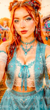 • Vibrant Boho-Chic Festival Looks: Teal and orange-toned outfits with lace, embroidery, and gemstone details.