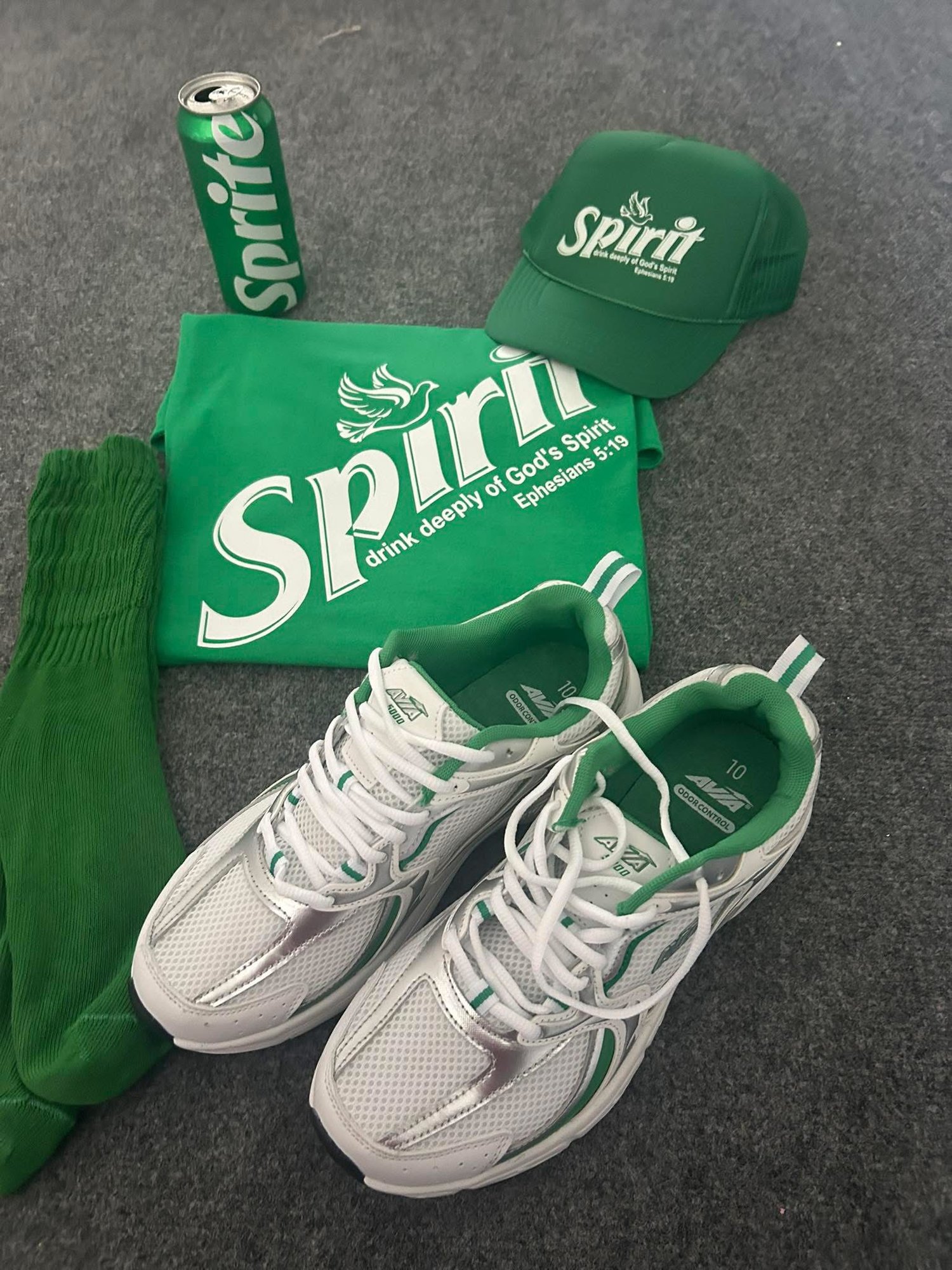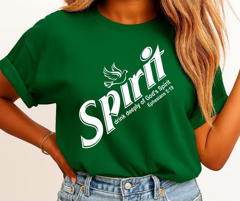 Refresh your style and share your faith with the Spirit T-shirt a bold, eye-catching design inspired by classic green-and-white soda vibes but filled with an uplifting message: “Drink deeply of God’s Spirit” (Ephesians 5:19).
