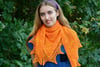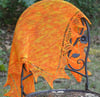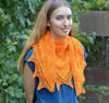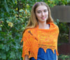 Elektra, the Greek tragic heroine, was a member of a truly dysfunctional family. Her father Agamemnon, hero of the Trojan War, was murdered by her mother, Klytemnestra, and her mother’s lover. Elektra was then consumed with a burning desire to avenge her father’s death. This shawl was inspired by the fire of Elektra’s revenge on those who killed her father.