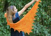Triangular shawl is worked from the bottom up with lace edging applied after the main section is complete. Easily adjusted to fit the amount of yarn you have on hand. Skills required: garter stitch, simple lace (yo increases; k2tog and ssk decreases). Suitable for adventurous beginners and intermediate knitters.