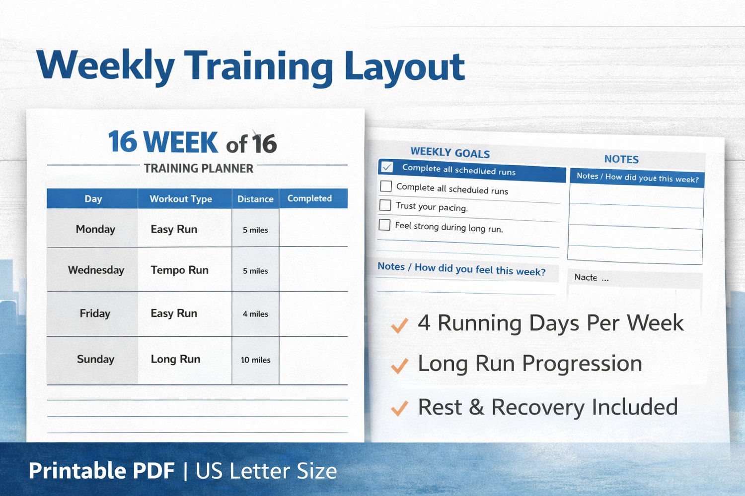 ✔️ 16 Weekly Marathon Training Planners