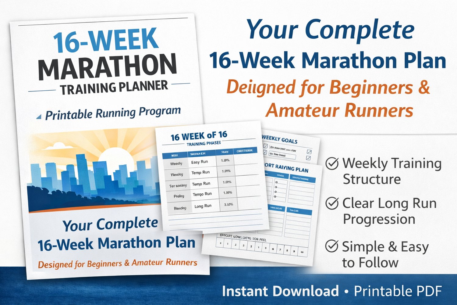 Download instantly and begin your 16-week marathon training plan with confidence and clarity.