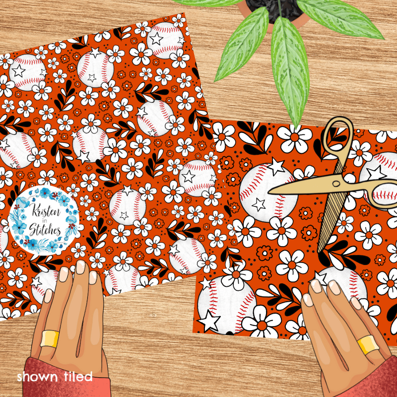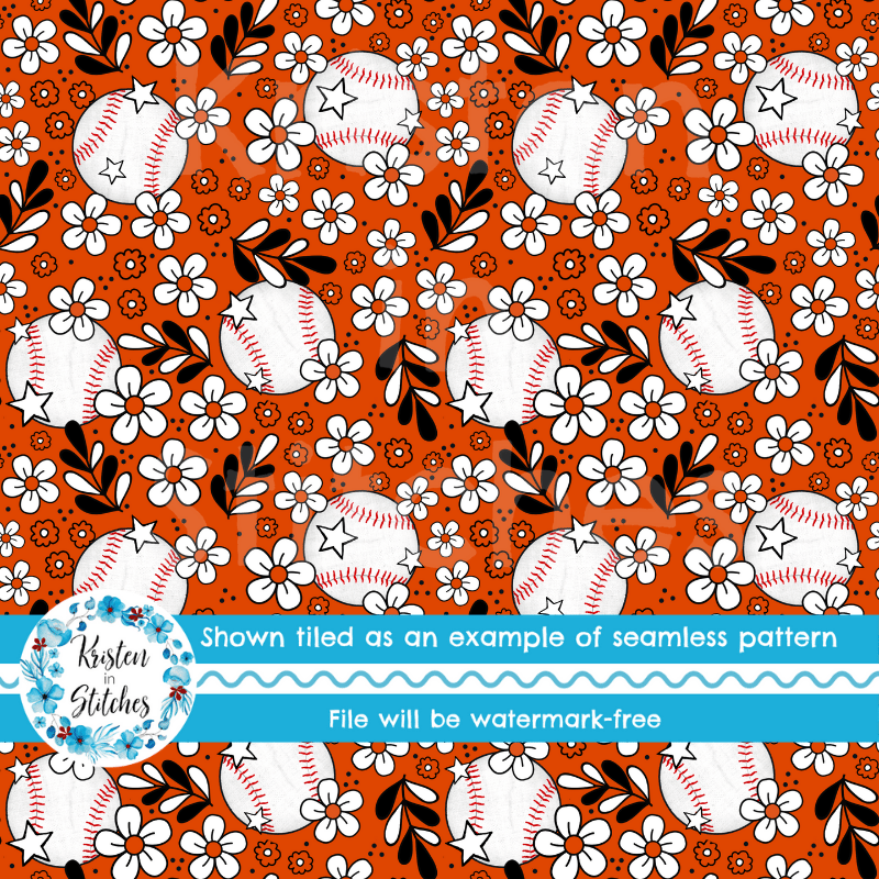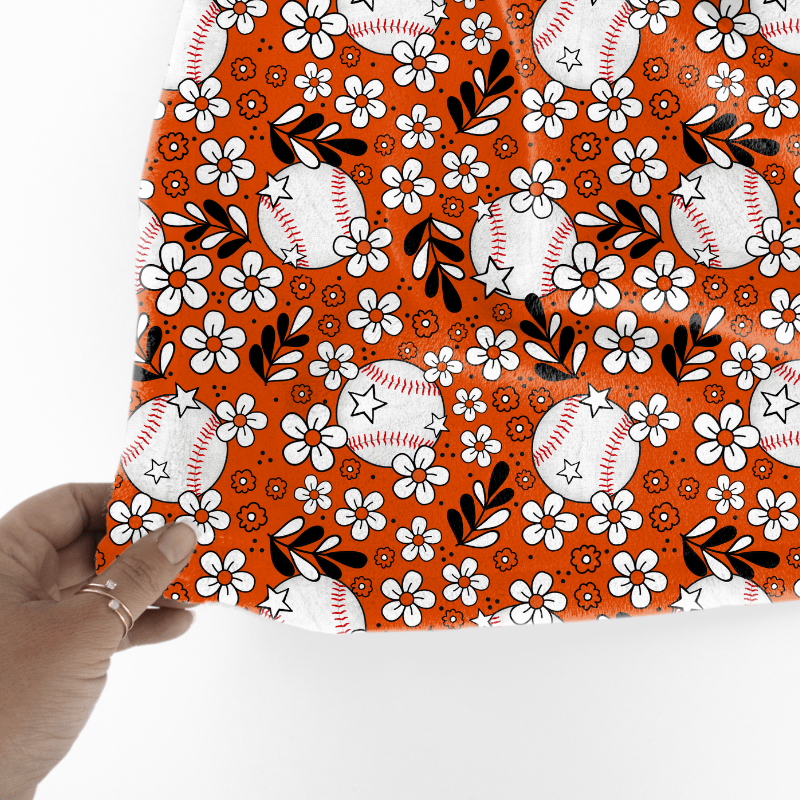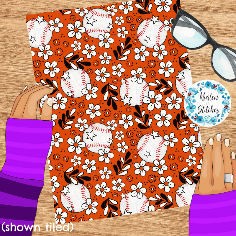 Floral pattern baseballs in team colors.