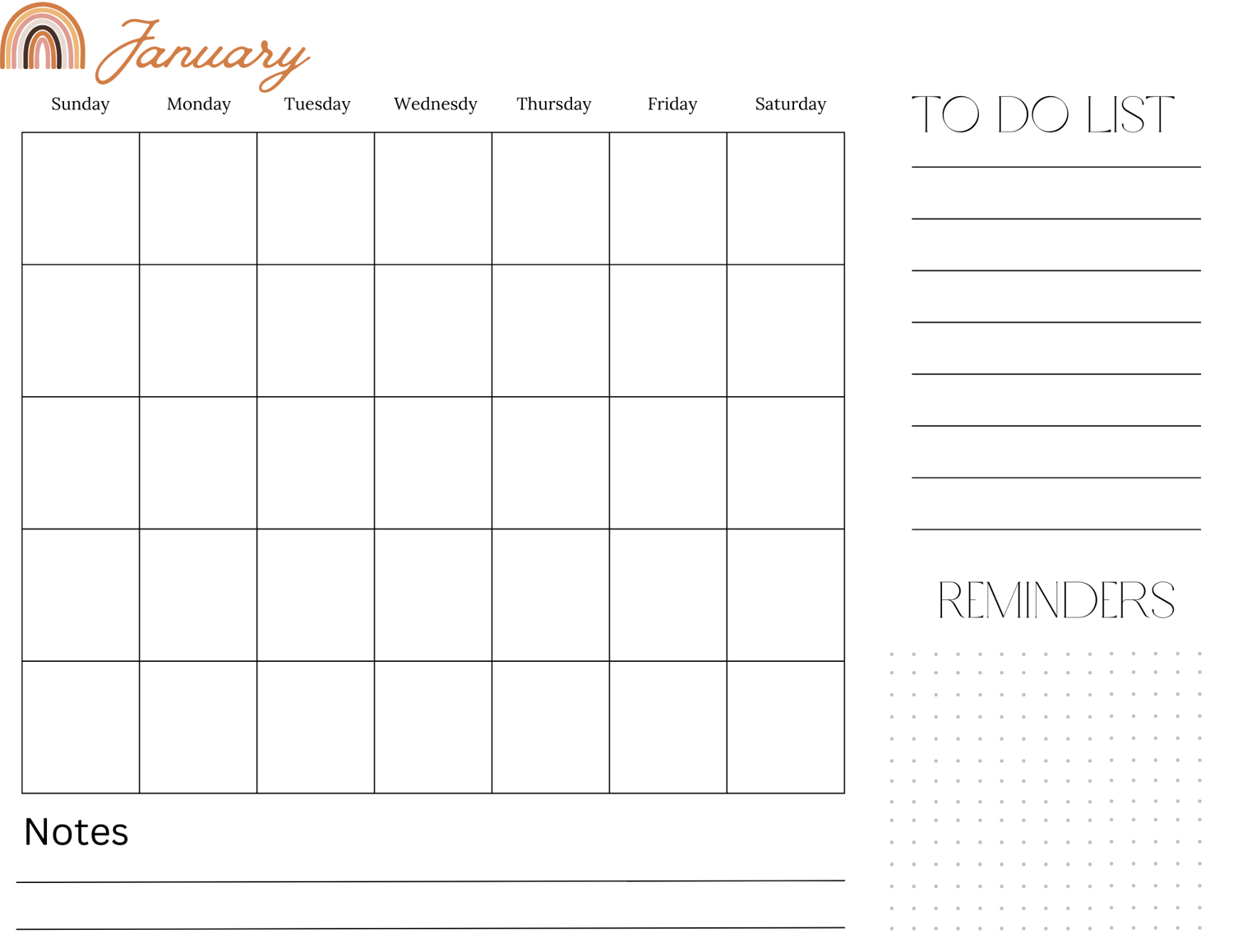 Boho 12 Month Printable Calendar