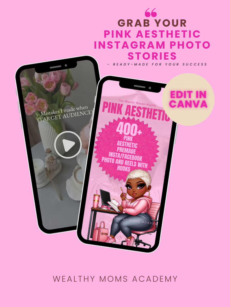 This Pink Aesthetic Instagram Reels Bundle includes over 400 fully editable Canva video templates designed with attention-grabbing hooks and a soft, feminine vibe that screams boss energy and brand power.