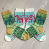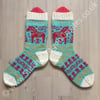 Please note stranded colorwork does not have the same stretch to it that a plain stocking stitch sock does.