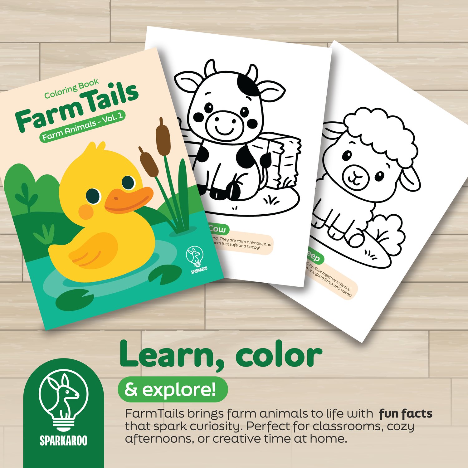 Inside youβll find 8 adorable farm animals (cow, pig, chicken, horse, sheep, goat, duck, and rabbit), each with a fun fact to spark curiosity. Perfect for kids ages 3+, parents, teachers, or anyone looking for a joyful, educational activity.