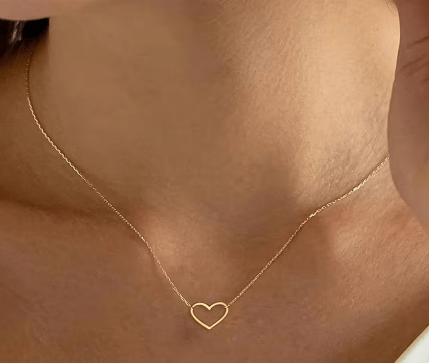 Sweet, simple, and full of meaning — this dainty gold heart necklace is the perfect piece to wear every day. The delicate open heart pendant rests beautifully on a fine gold chain, adding a touch of effortless elegance to any outfit.