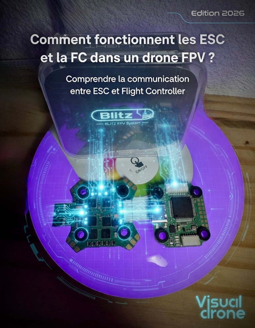 Dans un drone FPV, les ESC et la Flight Controller travaillent ensemble pour contrôler les moteurs et stabiliser le drone.