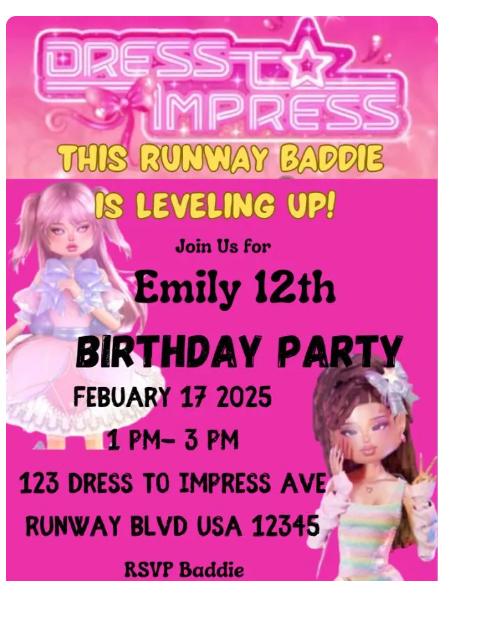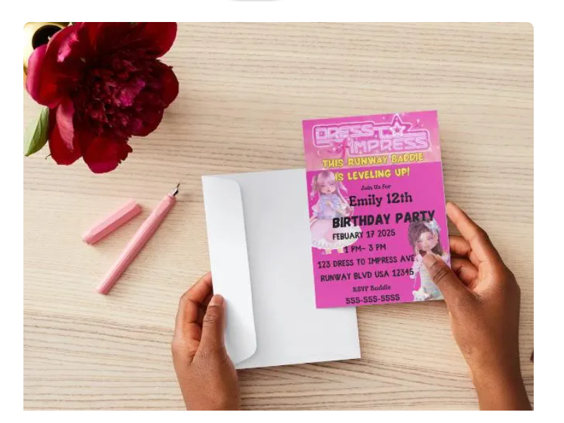 Dress To Impress Roblox Editable Inspired Invitation – Instant Download 5x7 Printable Gamer Invite for Birthday Parties FREE Bookmarkers