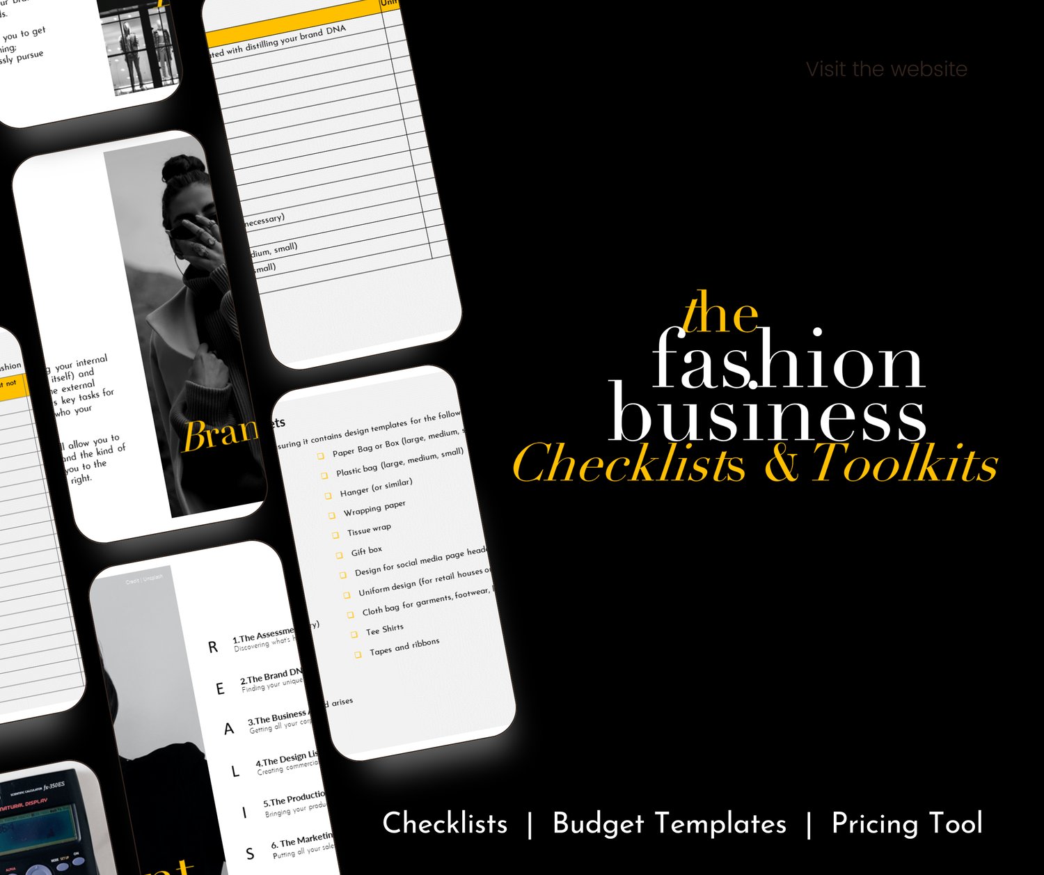 Fashion Business Checklists and Toolkits: Fashion e-book, Fashion business workbook, Budgeting checklist, Product pricing calculator