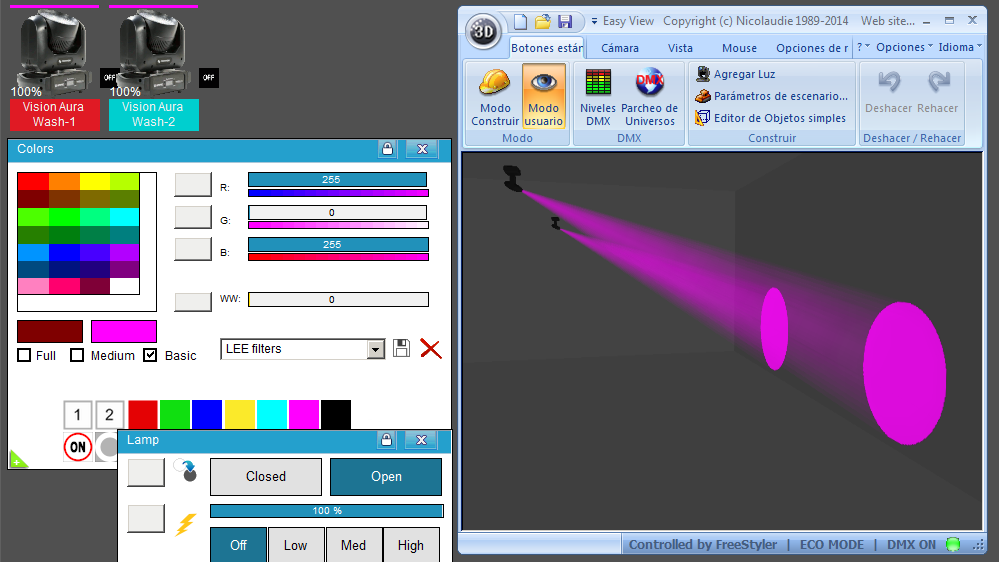 Esta Librería SSL2 está optimizada para trabajar con Magic 3d Easy View. Es decir para ver una representación 3D de las secuencias que estemos realizando con Freestyler, QLC+ o cualquier otro soft que se conecte con Magic 3d.
