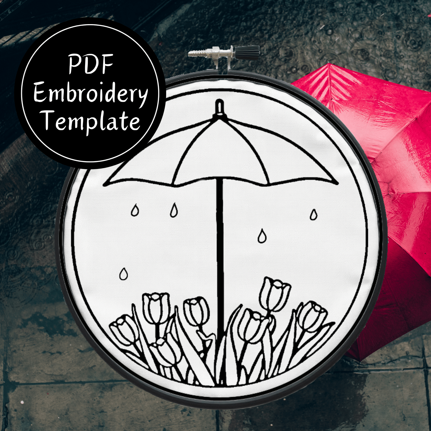 Make this Spring Rain pattern featuring tulips and an umbrella come alive with your choice of colors and stitches to create this simple embroidery pattern.
