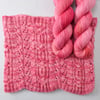 This cozy cowl features an all-over textured berry pattern broken up by a section of twisting, cabled brambles. No prickles here, just sweetness!