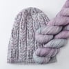 These alternating cabled and open motifs remind me of the clustered flower heads of lavender. These patterns lend themselves to some fun crown shaping and a great detail at the top of the hat, but you can also use this stitch pattern for a cowl if you like. The name is an anagram of ‘lavender’.