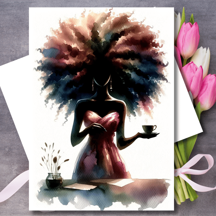 African American Greeting Cards, Afro Girl Greeting Cards, Black Girl, Mother's Day Cards, Greeting Cards for Black Women, Black Girl, Melanin Cards