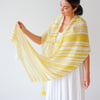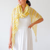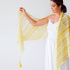 The textures of this design were inspired by the gorgeous blooms and tender stems of the drimia plants. Contrasting lines accentuate the change between the stitch patterns. Drimia was created with transitional season wardrobes in mind. It can be worn as a cozy wrap to provide comfort during the chilly spring nights, and as a long lightweight scarf once the warm weather comes into its own.
