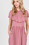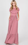 Striped Ruffle Top Maxi Dress - Mauve / $26.99