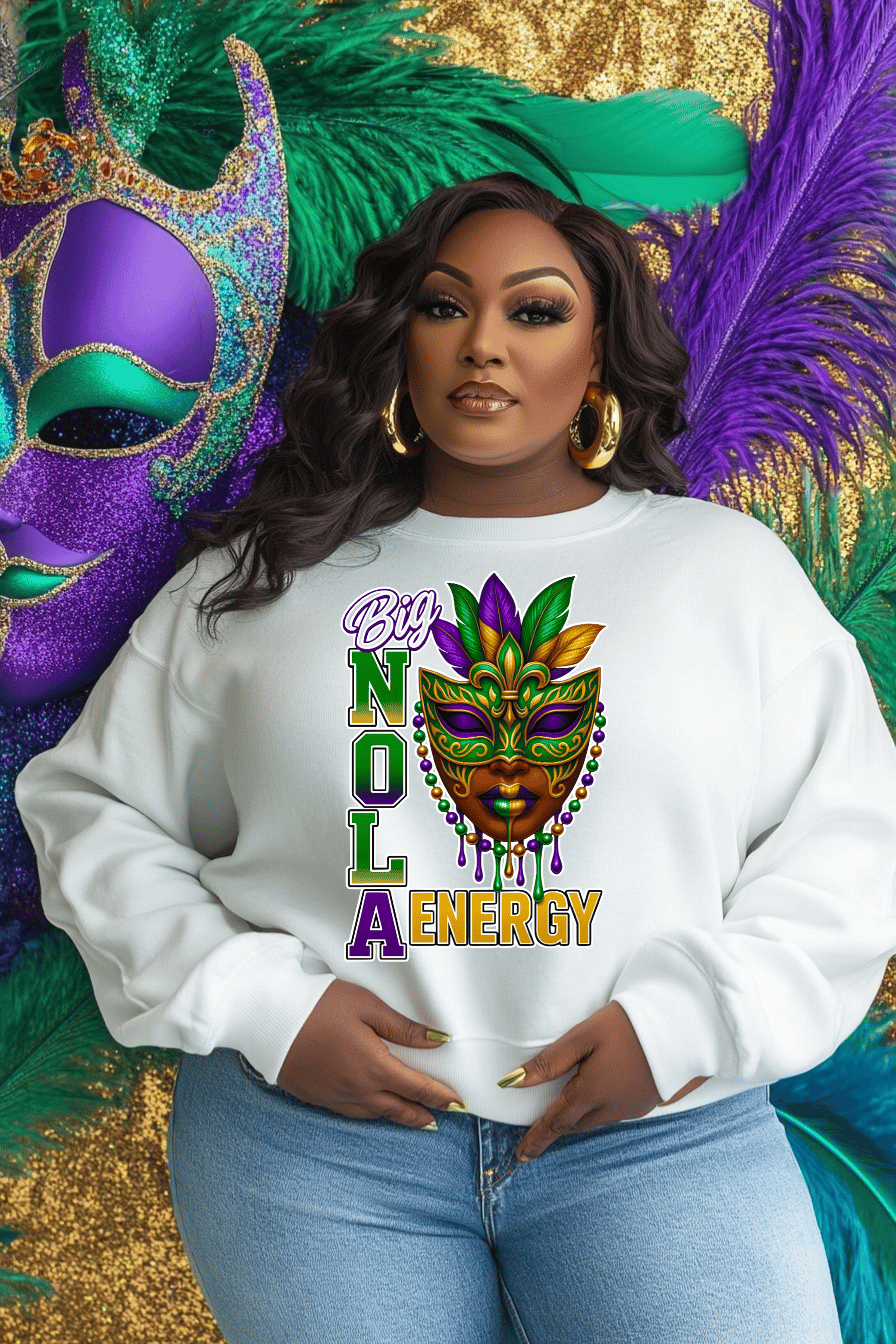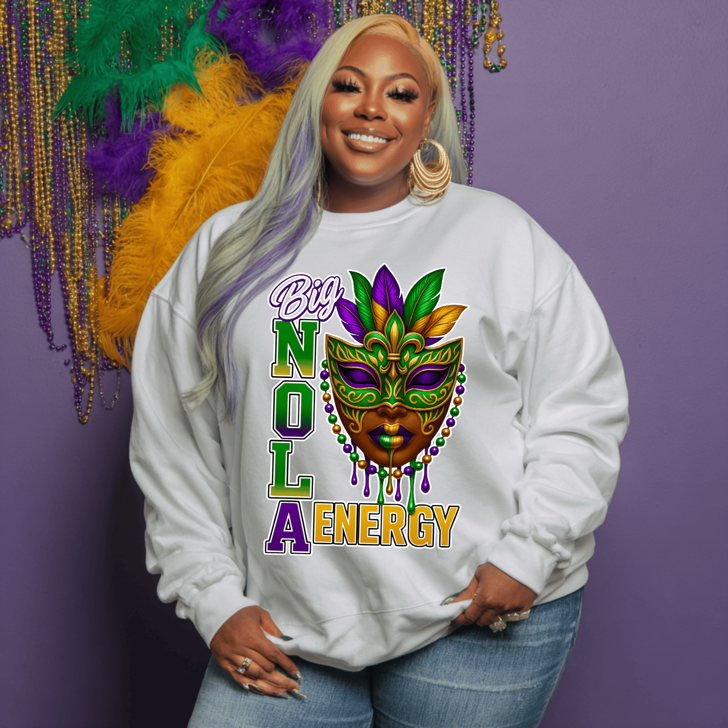 Big NOLA Energy PNG | Mardi Gras Mask Design | New Orleans Party Shirt Sublimation