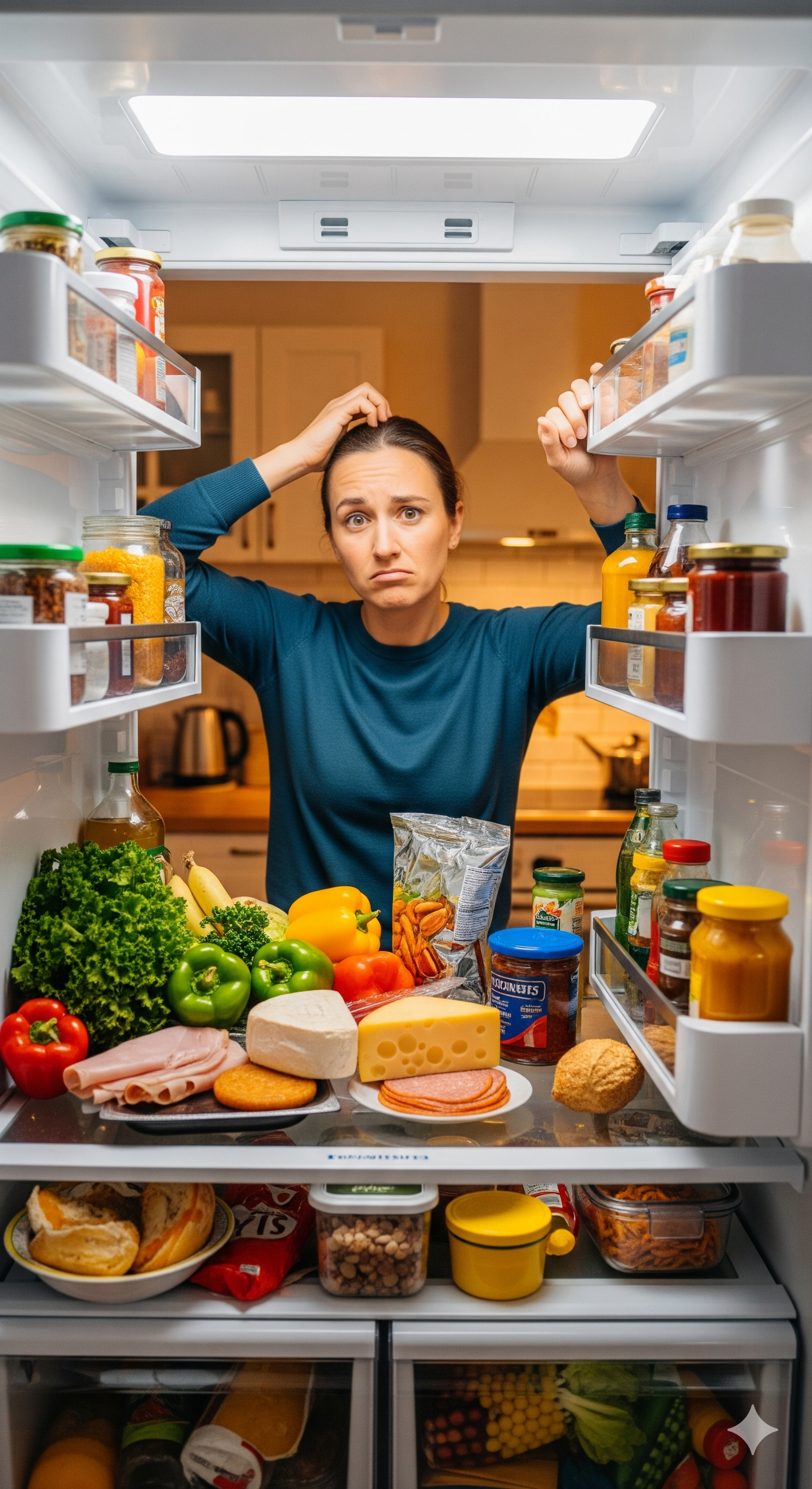 Buying ingredients without a plan, watching vegetables wilt, throwing away expired food while feeling guilty about the waste and money lost.