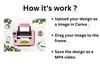 1️⃣ Upload Your Design: Begin by uploading your design as an image to the Canva template.