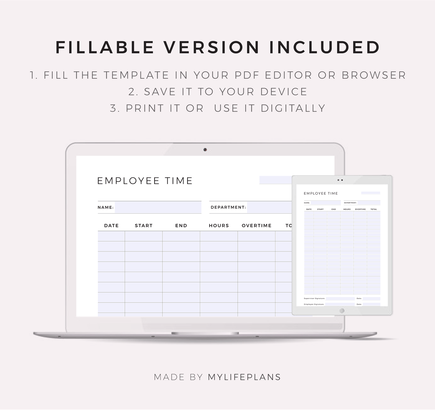 This is a printable employee time tracker — just download, print, and start using it right away.