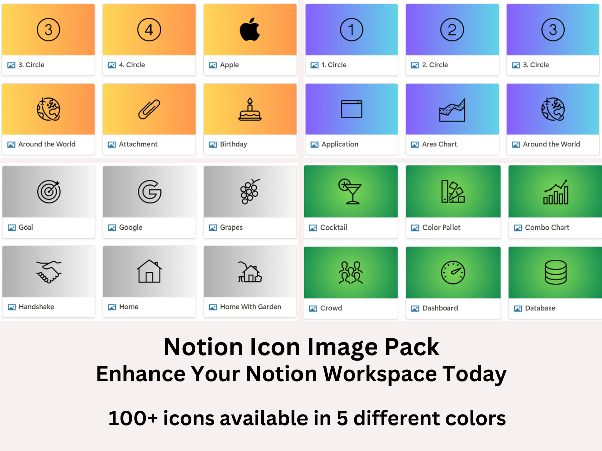 With a choice of 5 colors and over 100 icons to choose from, upgrade your Notion workspace with these stunning icon covers.